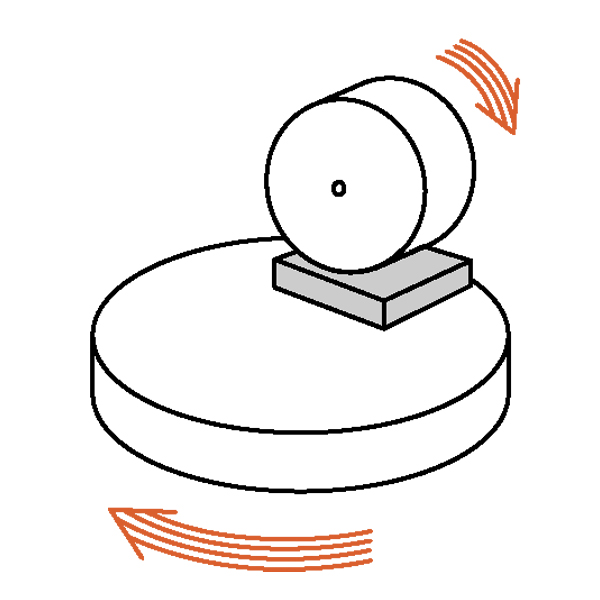チャック、マグネットチャックの使用でセンター穴無しの製品も研削できます。